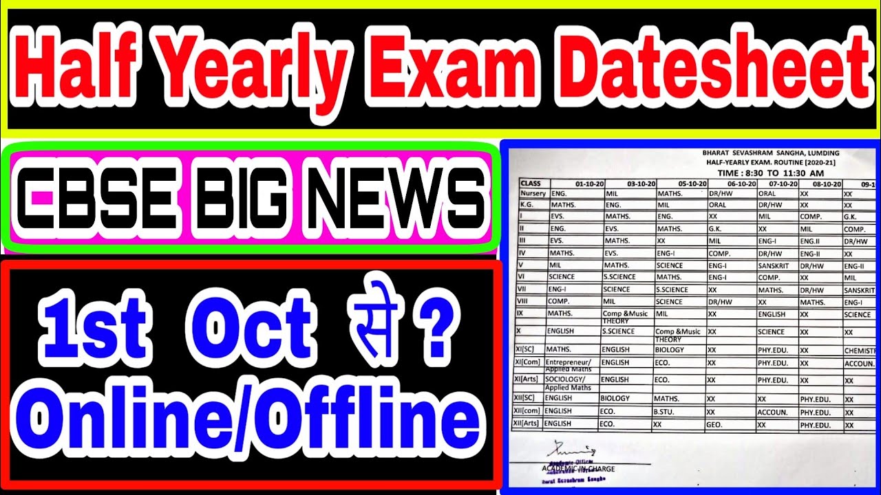 Cbse Half Yearly Exam Date 2020-21 - Date sheet of Half Yearly Examination - St. Xaviers High ... / And the remaining 50 percent weighatage is carried by the session ending examinations.